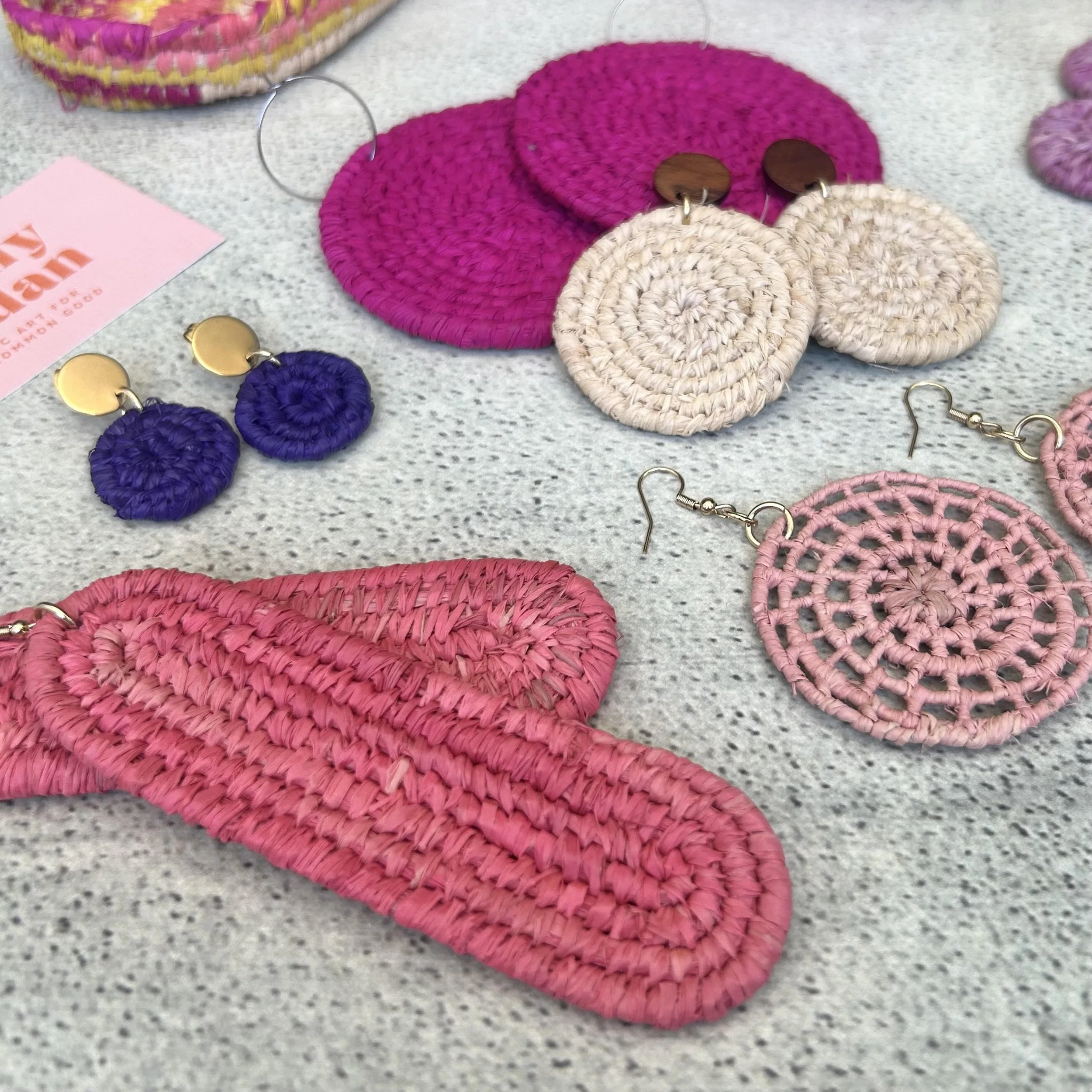 Join this fun weaving workshop and make your own pair of gorgeous raffia earrings - perfect as a gift to yourself or for a loved one! You'll meet lovely people, relax into the rhythm of weaving, and pick up some new skills along the way. No experience? No problem! This workshop is perfect for beginners.